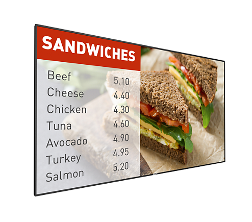 Connect and control your content via the cloud with the integrated HTML5 browser. Using the Chromium based browser, design your content online and connect a single display, or your complete network. Show content in both landscape and portrait mode, with fullHD resolution. Streaming content can also be shown in a PIP (picture-in-picture) window. Simply connect the display to the internet using WiFi or with an RJ45 cable, and enjoy your own created playlists